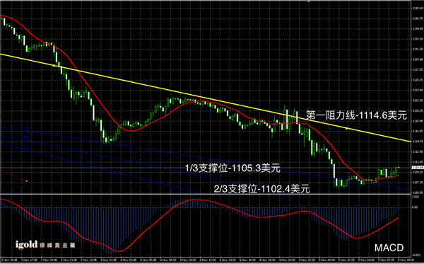 黄金阴阳烛录得回落后末端反弹持稳,不过柱体仍然较短,短线MACD显示弱势空头主导,黄金价格上午或持稳在1110美元附近,高位回调或不会超过1113美元附近,低位空头信号可参考1107美元附近,不过上午整体偏于低位区间盘整。