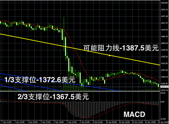 今日金价走势图图解,现货金价走势图分析(2013年6月10日)领峰贵金属
