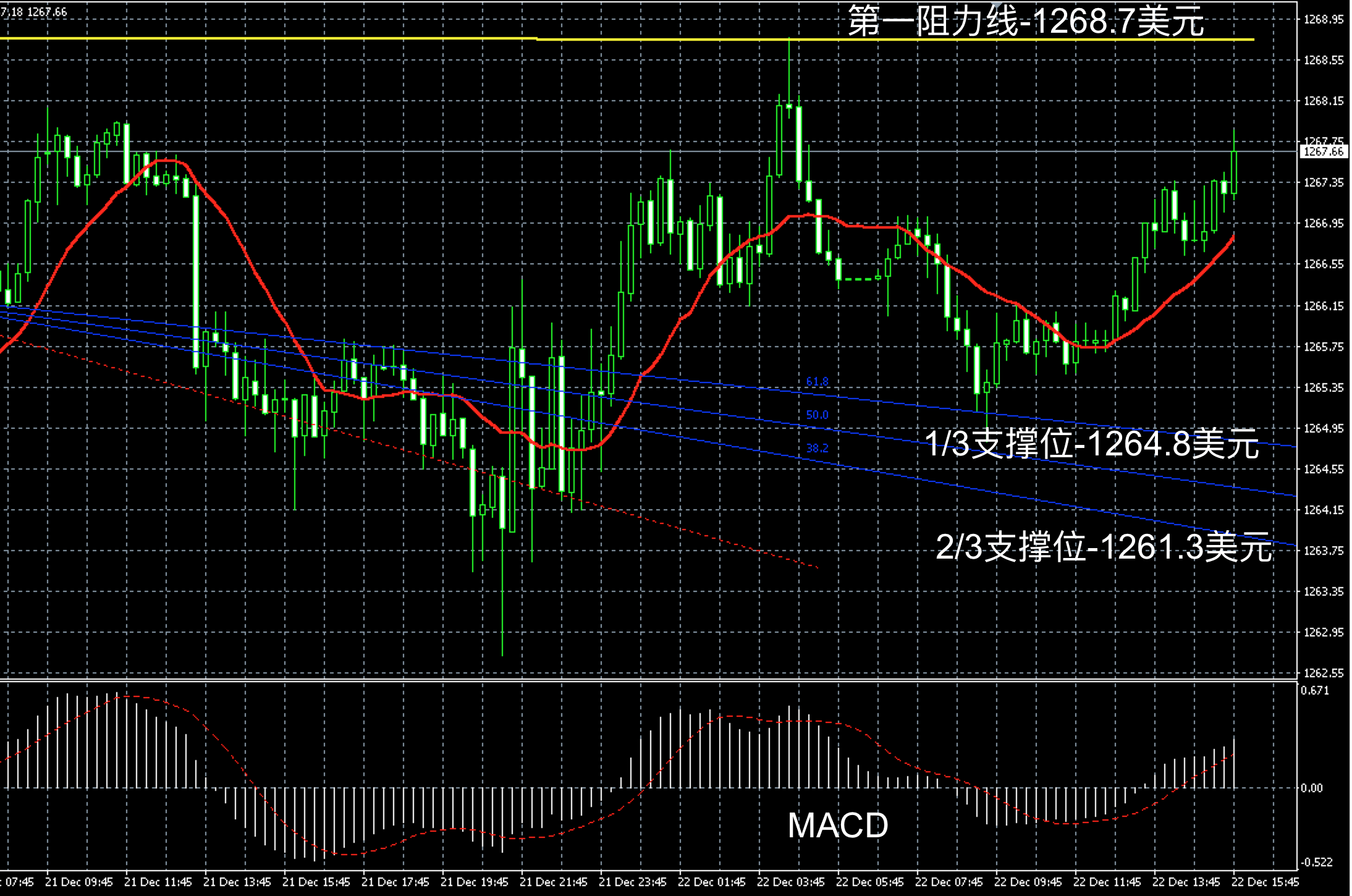 黄金阴阳烛录得区间小幅上探,末端高于红色日均线中位,短线MACD显示弱势多头主导,黄金价格晚上或在1267美元附近徘徊,高低多空扩大信号可分别参考1268.5和1265美元附近,高低若有突破可顺势看涨看跌2-3美元左右。