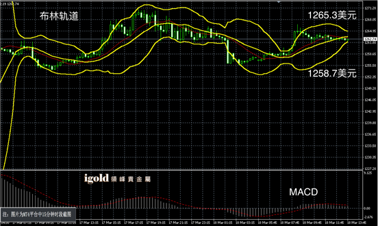 黄金阴阳烛录得后期柱体收短,聚焦在红色日均线中位,短线MACD显示呈中性,布林轨道区间收窄。黄金价格下午或小幅下探,低位若跌破1260美元附近或下行至1258美元附近,高位多头扩大信号可参考1265美元附近。