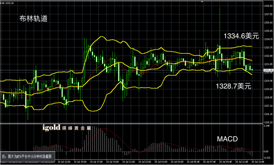 黄金阴阳烛录得阴阳烛间隔出现,末端小幅低于红色日均线,短线MACD显示呈中性,黄金价格下午或在1330美元附近徘徊,高低多空扩大信号可分别参考1333和1328美元附近。