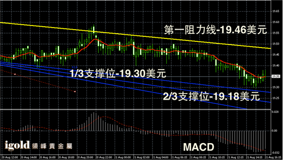 白银阴阳烛录得柱体较短,整体处于红色日均线中位,短线MACD显示空头主导,白银价格或围绕19.35美元震荡。