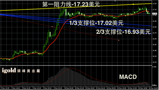白银阴阳烛录得柱体较短,整体处于红色日均线中位,短线MACD显示呈中性,白银价格或继续在17.1美元上下整理。运行区间可参照17-17.18美元。
