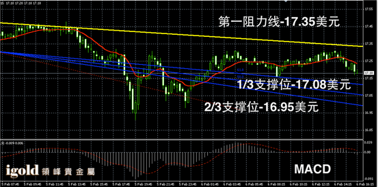 白银阴阳烛录得离散率增加,柱体高低交叉于红色日均线中位,短线MACD显示呈中性,白银价格或小幅下探17.15美元附近,随后持稳横盘运行等待非农数据公布,低位支撑可参考17.05美元和16.93美元。高位突破17.35美元,多头或有扩大之势。