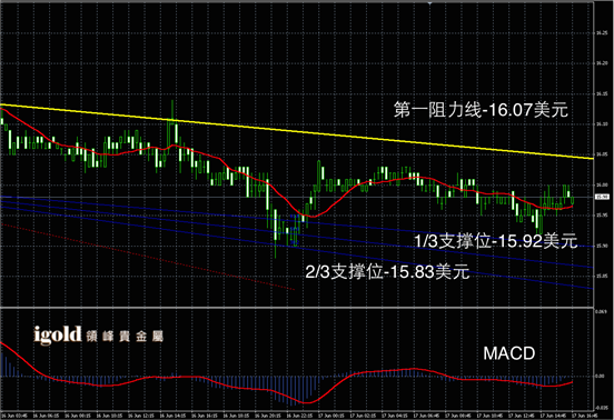 白银阴阳烛录得后期柱体处于红色日均线中位,短线MACD显示呈中性,白银价格晚上或首先浮动在15.95美元附近,晚上8点左右振幅或有扩大,高低多空信号可参考16.05和15.9美元附近。