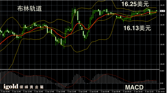 白银阴阳烛录得聚焦明显,整体处于红色日均线中位,布林轨道区间上探后收平,白银价格或小幅上探16.25美元附近后,小幅回落至16.15美元附近盘整。