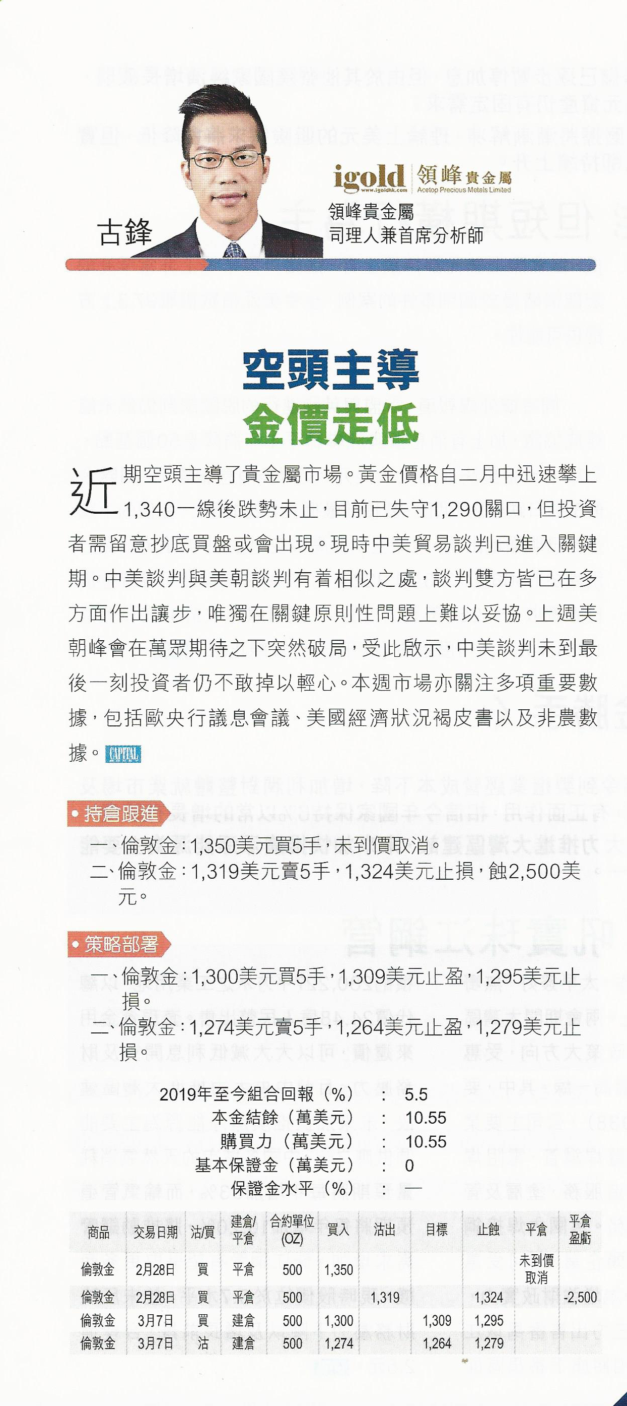 二、伦敦金,1,319美元卖5手,1,324美元止损,蚀2,500美元。