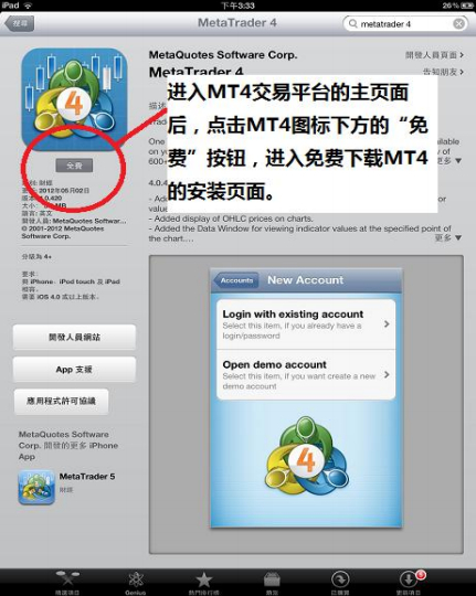 3.选择“Metatrader4”进入到程序介绍的页面。点击左上角的“免费”。