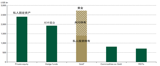 图C-3 黄金在投资市场中的市值比重柱状图