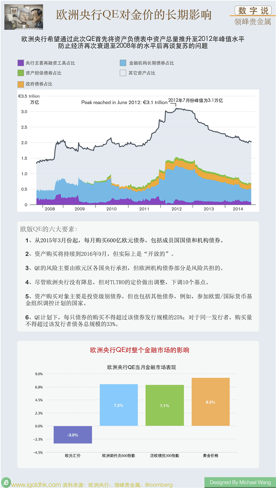 欧洲央行QE对贵金属市场的长期影响,整体是利多的。因为欧洲央行QE规模大,对整个金融市场的影响分以下几个方面: