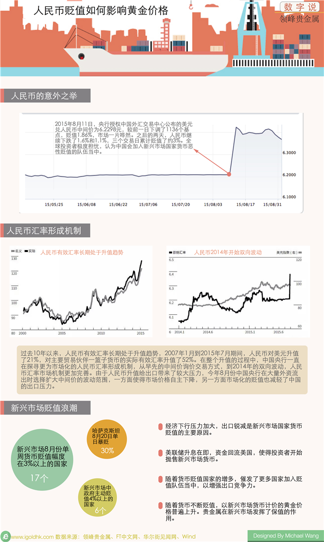 2015年8月11日9点13分,央行授权中国外汇交易中心公布的美元兑人民币中间价为6.2298元,较前一日下调了1136个基点,贬值1.86%,市场一片哗然。之后的两天,人民币仍然处于贬值趋势中,8月11日至13日的三个交易日,人民币兑美元汇率中间价贬值幅度分别为1.86%,1.6%,1.1%。三个交易日中人民币累计贬值约3%,引发了全球投资者的极度担忧,认为中国会加入新兴市场国家货币恶性贬值的队伍当中。