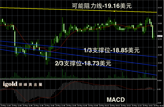 白银阴阳烛录得持稳力量减弱,后期阴烛录得占多,且低于红色日平均移动线中位,短线MACD显示呈中性,后期白银价格进一步承压下行。