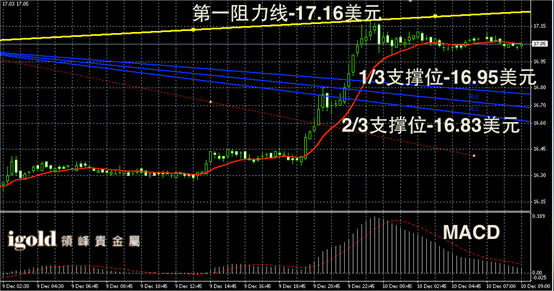 白银阴阳烛录得上升后,柱体聚焦在红色日均线中位,短线MACD显示弱势多头主导,白银价格回调已经结束,或不断下探17美元,从而尝试持稳。