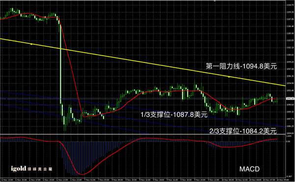 黄金阴阳烛录得整体处于红色日均线中位,后期阳烛小幅增加,短线MACD显示呈中性,黄金价格上午或小幅上探1093美元附近,高位在1095美元附近阻力较大,一时或难以突破,低位空头信号可参考1090美元附近,跌破后或小幅下探1088美元附近。