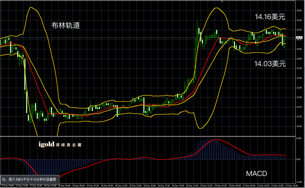 下午欧洲消息面较少,欧洲股市偏于小幅反弹,对上周的下行进行调整,但是预期振幅不会太大,欧美市场目前已经进入圣诞节前奏,投资者偏于观望。另外,美元指数小幅回调后,低位逐渐进入超卖区间,短线进一步下行的区间较小,所以金银价格高位反弹空间也有所受限。
