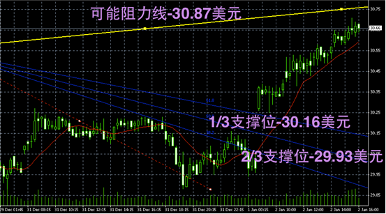由于协议只是将1100亿美元自动减支临时推迟,所以美元指数在消息发布后,大幅走跌,美指从79.7下跌至79.3,欧元价格再次反弹,目前最新报价为1.33美元。未来美指的波动将会继续联动此次金银反弹的趋势,所以需要投资者关注美元指数的运行方向。
