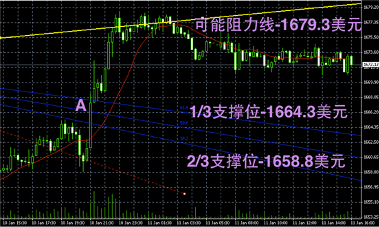 今日摘要:市场在来到高位震荡后,并没有继续上行,由于黄金价格在1680美元附近遭遇阻力线,所以市场转为窄幅的区间整理。且市场消息面今天比较冷淡,美元指数和欧元价格波动也较小,所以金融市场整体起伏不大。黄金日间一直围绕1673美元附近震荡,伦敦银价格则在30.8美元附近徘徊。预期收盘前,金银走势或继续表现为区间整理。