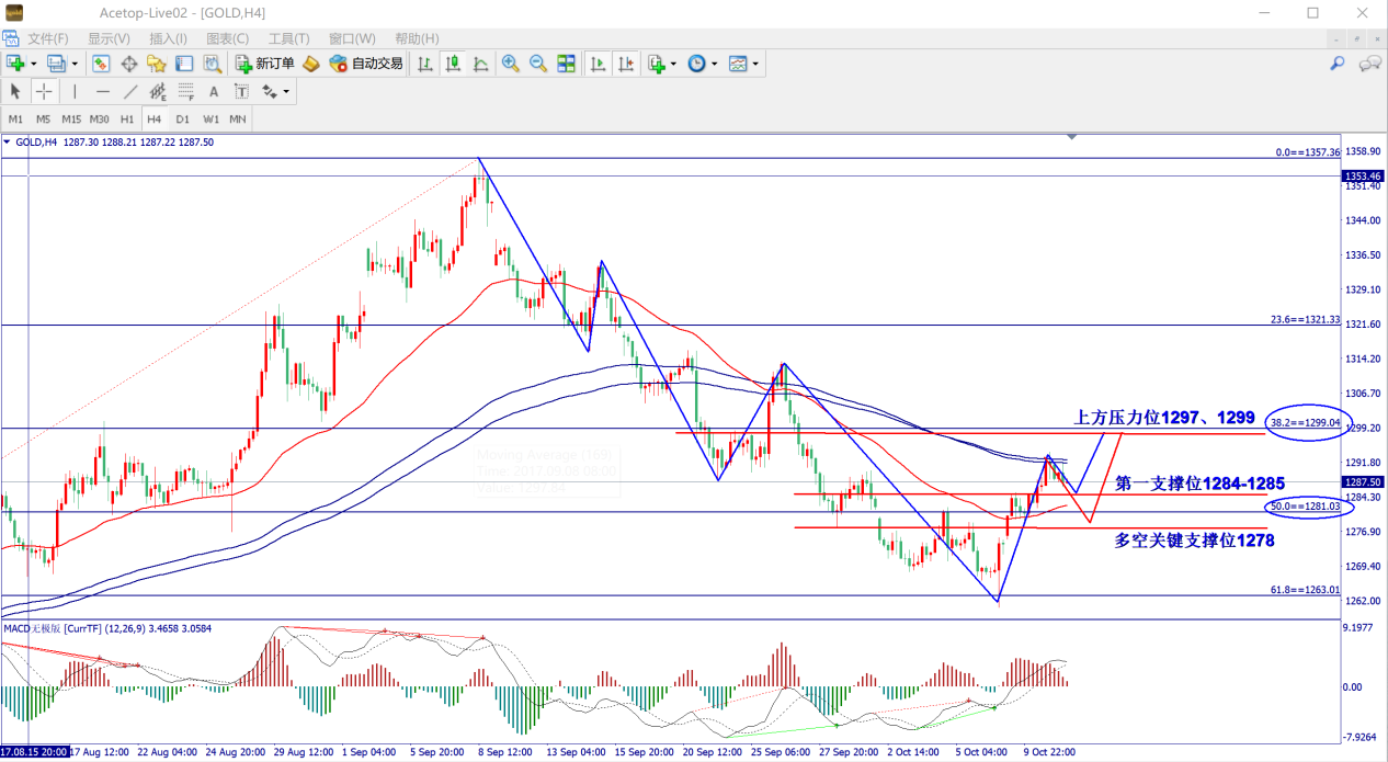 激进:1284.5附近做多,止损3美金,目标1287.5-1290-1294-1297附近。