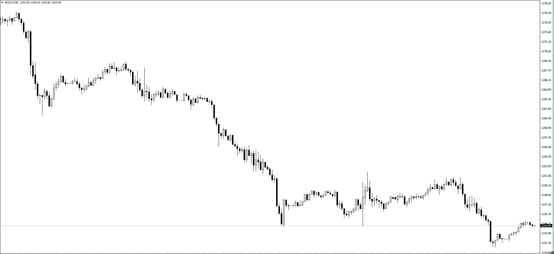 【黄金30分钟走势图】整体上看,黄金目前的单边空头趋势继续持续着,没有任何阶段性反弹的迹象,故前面评论中一直建议的做空思路也是正确的,并且大幅盈利。回顾昨日行情,黄金欧亚盘反弹至1251附近位置后,在美盘再次大跌下来,最低下行至1240一线,日内再次延续空头走势。那么昨日评论中的1251位置做空,正好是这波下行的最高点位置,完美入场。今日走势上,目前黄金早盘短线上处于震荡反弹,但力度依旧是很弱,所以思路上依旧保持空头思路不变,不过需要注意的是几个重点位置,上方1245-1247一线重要压力,下方支撑1240附近,如果该压力不能去突破,那么今日大概率还是下行,当然也不排除今日走势为震荡反弹行情,具体灵活应对即可。