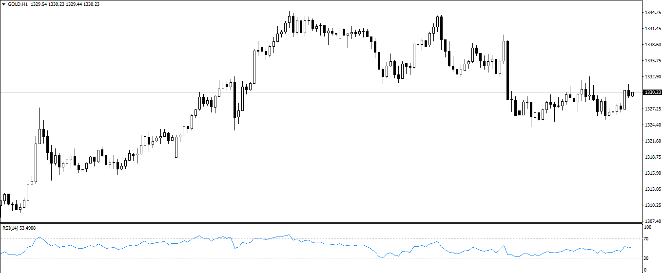 [上图黄金1小时图]本周黄金在周四凌晨美国经济褐皮书公布之后,走出一轮破位下行行情,同时美元指数也短线受到支撑反弹。此时,虽然黄金跌破高位区间,之后走出较大跌幅,但之后(周四)走势上却并没有延续空头继续下跌,而是进入震荡走势。从技术面来看,目前黄金处在1326美元附近的支撑,该支撑也是前期的震荡区间支撑,经过昨日走势可以看出,黄金短线在该位置不一定能够继续下行,有可能企稳反弹,因为目前走势并不弱势。那么操作上需要避免追空行情,暂时不建议盲目看空,除非出现看空信号。预计黄金在该位置会震荡反复,日内建议高抛低吸短线为主。