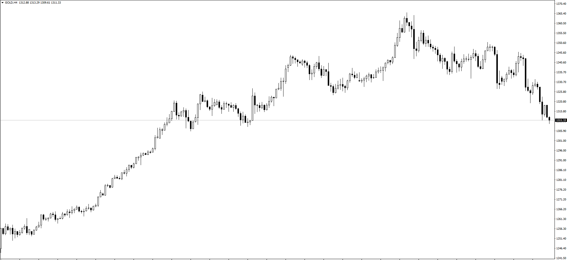 【黄金小时图】回顾昨日行情,黄金亚欧盘震荡反弹至最高1332美元附近,随后美盘时间段开启单边下行,最低下跌至1312一线位置附近,日内最高最低跌幅高达20美金,收出大阴线。那么昨日评论中建议反弹1332美元一线做空策略正好介入到了日内最高点位置;同时策略中建议关注昨日的短线反弹节奏点契机,由于晚间行情下行至下方目标位置时,下跌力度较强,反弹无企稳信号,故昨日晚间也在直播间里面提示多单不介入或成本位离场,空单看新低。此时,从黄金走势上看,空头趋势依旧维持不变,并且短线无较明显企稳信号,那么操作上依旧做空为主。但从4小时看,目前运行到1310支撑位置附近,短线或将震荡反弹一下。