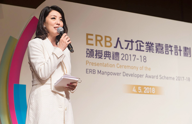 内文图5-担任「 ERB人才企业嘉许计划」颁奖典礼司仪的陈芷菁女士向所有新获嘉许以及获延续资格的「人才企业」表示祝贺。