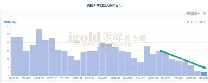 “小非农”意外萎缩!周三发布的数据显示,美国9月私营企业就业人数意外减少32000人,而此前一个月的数据也被修正为减少3000人,创2023年3月以来最大降幅,这一结果与市场预期大相径庭。据彭博社对经济学家的调查,预测的中位数为增加51000人。ADP强调,即使剔除技术调整的影响,整体趋势并未改变,大多数行业的就业增长势头持续减弱,无论是商品生产部门还是服务业,就业岗位均出现下滑,显示出普遍的放缓迹象。ADP报告的负面结果是一个明确的催化剂。交易员们迅速重新评估了利率前景。随着更多数据证实劳动力市场正在走弱,市场参与者似乎更加相信决策者关于在12月前可能还有两次降息的指引。截至10月2日,CME美联储观察工具显示,市场预期美联储10月降息25个基点的概率升至96.8%,12月降息25个基点的概率升至87.4%。